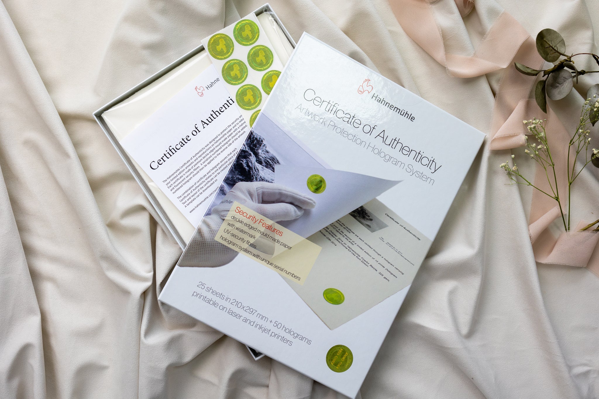 Add Hahnemühle’s Premium Certificate of Authenticity: Each comes with a deckled-edge paper, security fibres, and matching numbered holograms — one for the certificate, one for the ArtBook.