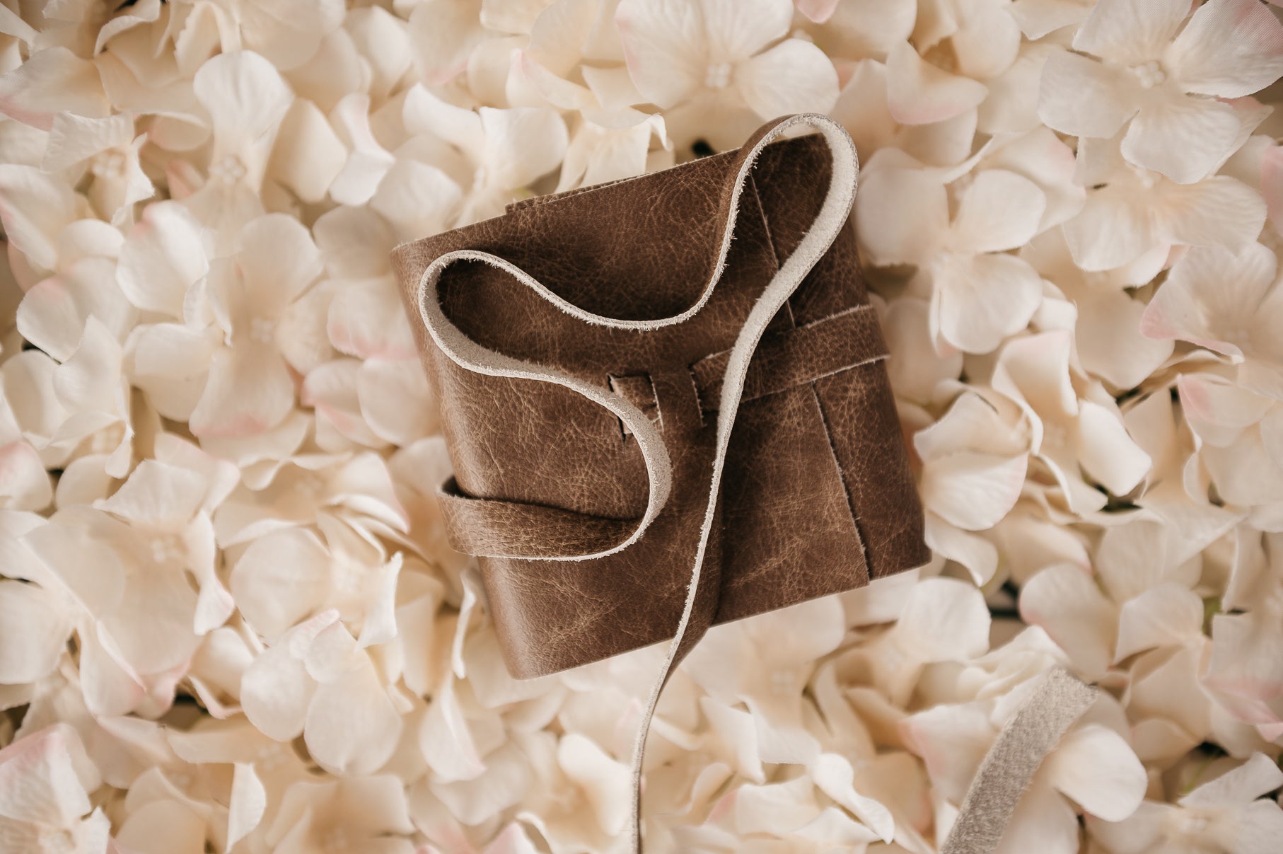 It's unlike anything else - a soft, leather-wrap cover envelops pages of beautifully hand-torn, cotton rag fine art prints - front page embossed in gold. A rustic leather strap closure winds around to finish the look. The Journal cover is unattached to the block of pages.